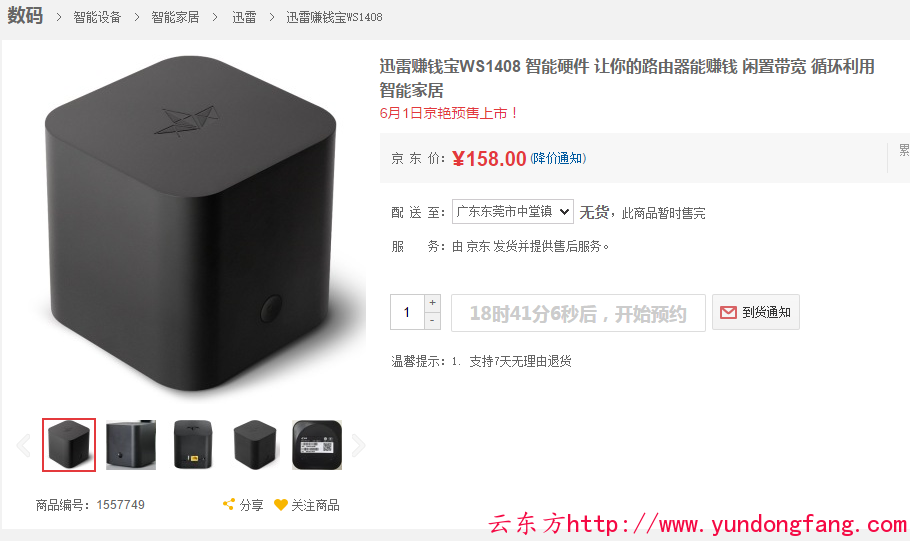 迅雷赚钱宝WS1408 智能硬件 让你的路由器能赚钱 闲置带宽 循环利用 智能家居 6月1日京艳预售上市!