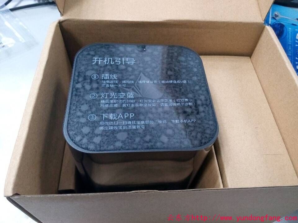 期待已外的迅雷赚钱宝终于拿到了。这个是我在京东上购买到的。如果是淘宝众筹的现在还没有动静,希望它能给我带来电话费。到手赚钱宝是在东东买的,大家来看看它长什么样的。从外观包装不豪华感觉得平平。