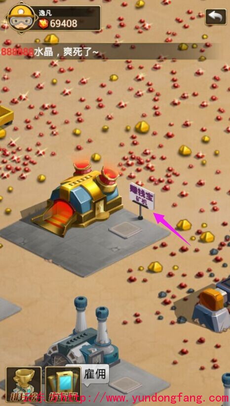 进入矿砀看到有雇佣,有PC的矿场,注意看有一个牌牌上写的是赚钱宝矿机的这个就是赚钱宝矿机,这台矿机挖到的矿就是迅雷赚钱宝的挖到的水晶矿石收了就行了。