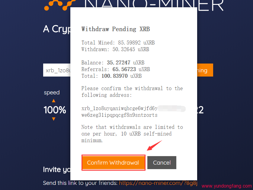 需要注意的是:一个小时内可以提一次币,最少10个才可以提。如果提币手显示为负数时候,刷新一下网页再重新开始挖就可以了。